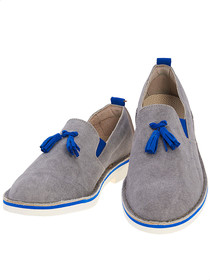 Grau Wildleder Mokassins mit Quasten