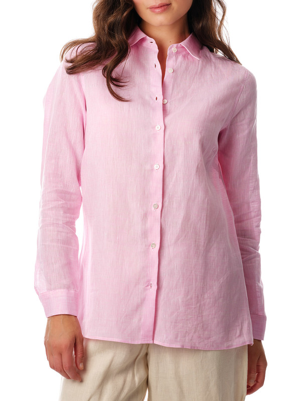 Women's Pure Linen Pink Shirt